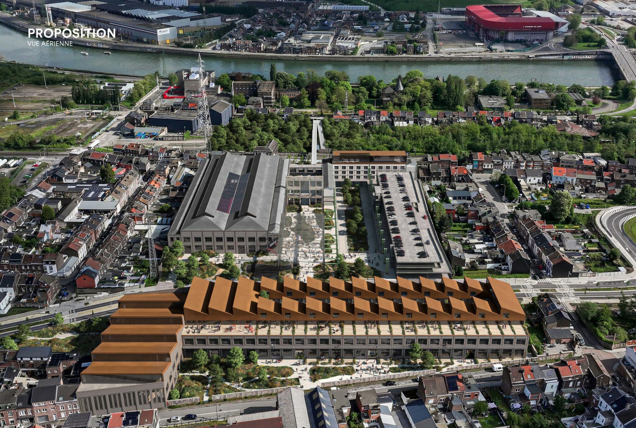 Il s’agit d’un projet englobant les deux halles (+/- 22.500 m²), avec une vision pour l’ensemble du quartier et ses habitants (actuels et futurs), reposant sur une mixité de fonctions. Un projet qui intègre également, parmi les balises fixées, les notions de mobilité et de circularité chères à SPI.