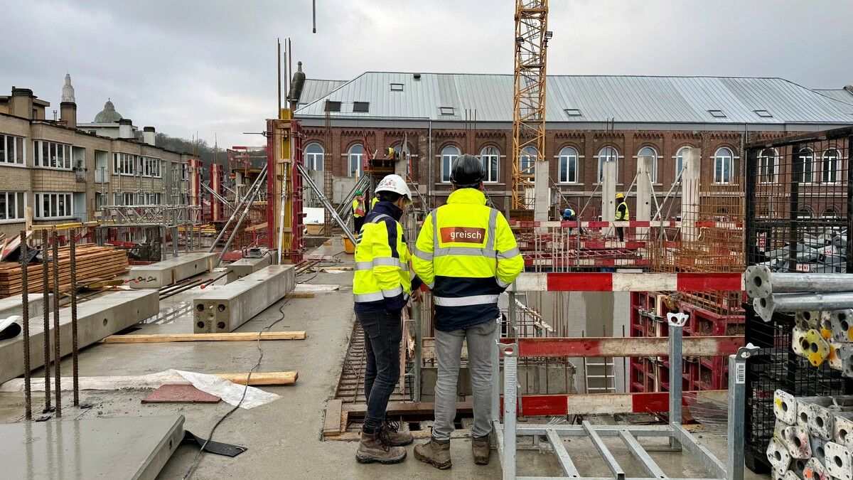 Le chantier d’extension de la Haute École Charlemagne à Liège franchit une nouvelle étape : les étages prennent forme et le troisième niveau sera bientôt atteint. Depuis les futurs locaux, les vues sur les monuments emblématiques de la ville se dessinent déjà.